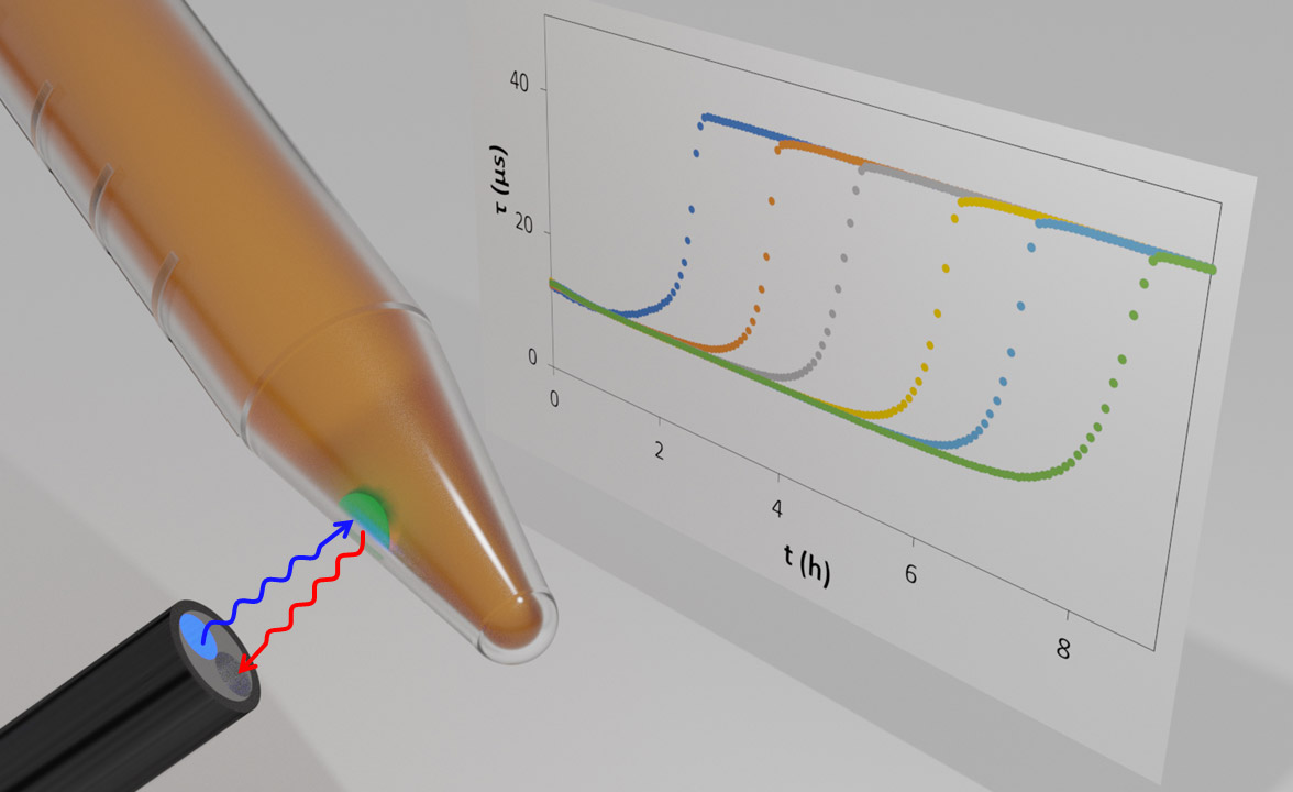 very rapid increase in the lifetime of the dye, which can be detected by an appropriate instrument.